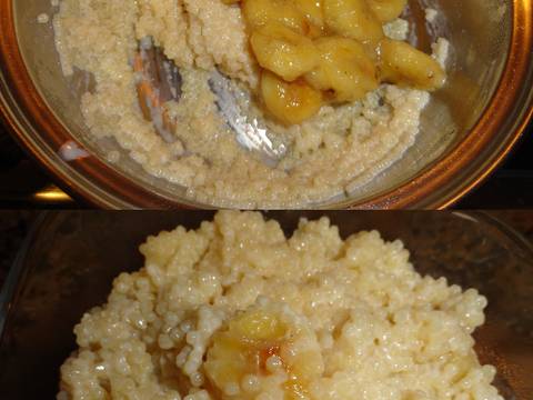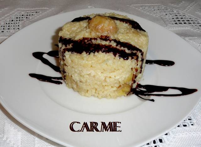 Cous-cous dulce con plátano y salsa de chocolate, muy
