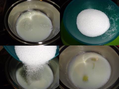 En un cazo poner la leche, el edulcorante, la piel de limón bien lavada y sin nada de piel blanca del interior, calentar.