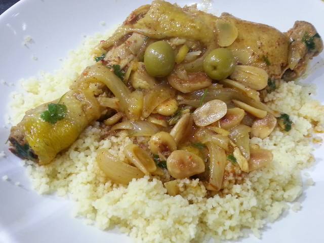 - Una vez hecho, se saca del fuego y se incorpora el perejil, el cilantro, las aceitunas. Se mezcla muy bien y se sirve con couscous