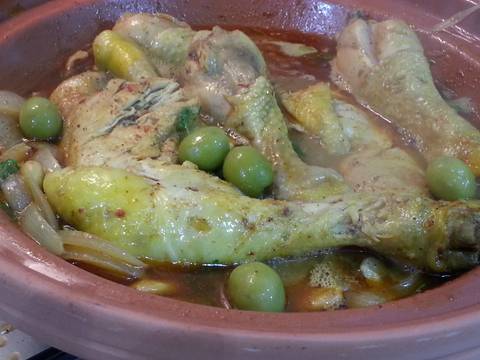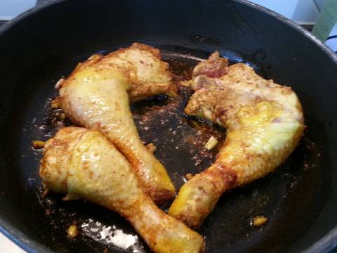 - Transcurridas las cuatro horas, se saca el pollo. Se pone un poco de aceite en una sarten y se sofríe el pollo. Se colocan los trozos en el tagine